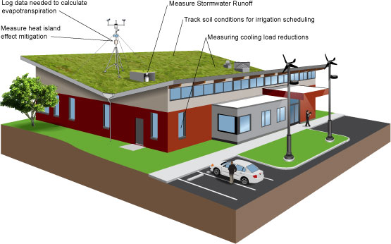 初步設計的過程中,收集環境數據,選擇適合的氣象站監測最好的綠色屋頂設計是謹慎的。降雨,溫度,相對濕度,風速,風向,太陽輻射都呈現明顯的季節性變化,并可以通過周圍的建筑和結構的影響。