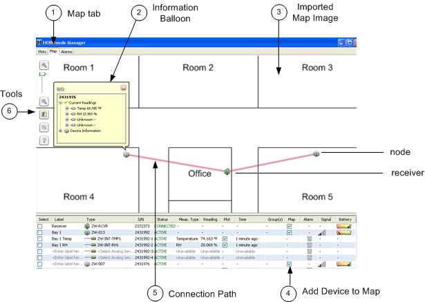 在網絡地圖上放置圖標,以幫助您跟蹤您的設備。 您可以在設備上展開信息氣球以查看狀態信息和傳感器讀數。 您還可以導入自定義背景圖片,例如平面圖。