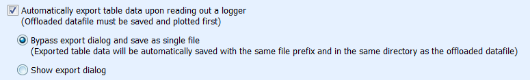 重要提示:如果在導出首選項中選擇了“顯示導出對話框”設置,則數據傳送將無法正常工作。要禁用此設置,請從Windows中的文件菜單或Macintosh中的HOBOware菜單中選擇首選項。在常規類別中,選擇導出設置。確保未選擇“顯示導出對話框”。即使禁用了“在記錄器讀出時自動導出表數據”選項,也不能選擇“顯示導出對話框”以使數據傳送正常工作。您的偏好設置必須如下所示: