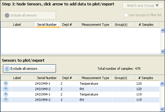 選擇要包含在文件中的傳感器,或單擊包括所有傳感器按鈕。