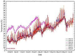 為了滿足第一個(gè)目標(biāo)的要求,在2008年5月GHD的商業(yè)潛水者部署HOBO溫度記錄儀 六近岸站點(diǎn),深度為1.5米至9米。記錄儀很容易被它們連接到使用扎帶沉淀物捕集器部署,如圖1.使用溫度記錄器被下載水下按月HOBO ,快速和可靠的機(jī)制進(jìn)行數(shù)據(jù)檢索原位(圖2和圖3)。
