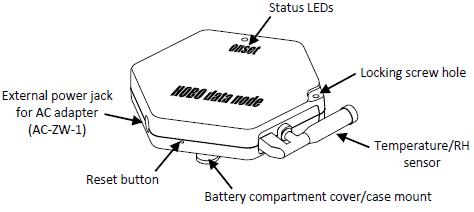 HOBO ZW-003數據節點配有集成式溫度/相對濕度傳感器。最初使用AC適配器供電時,此節點在ZW無線網絡中具有路由功能。