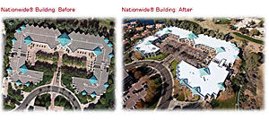 綠色RoofAfter18年極端沙漠的炎熱氣候,在斯科茨代爾Nationwide®保險公司總部大樓在斯科茨代爾的屋頂上,亞利桑那州開始自然老化過程。維修人員已經追了泄漏近五年時,他們聘請艾倫•史蒂文斯Associates公司要解決的問題,并把他們的屋面系統進入21世紀。原來車頂系統超過4砟EPDM“在混凝土屋頂甲板R-20屋面保溫,并通過2銀裝”河石的。相比,今天在亞利桑那州使用的現代耐熱屋面系統,將其迅速成為在問候結構完整性,維護成本和能源消耗的主要責任。