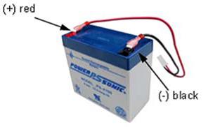 6.將電纜的紅色導線連接到正極(+)端子和黑色導線到負( - )終端。終端是彩色編碼的。 始終確認極性。
