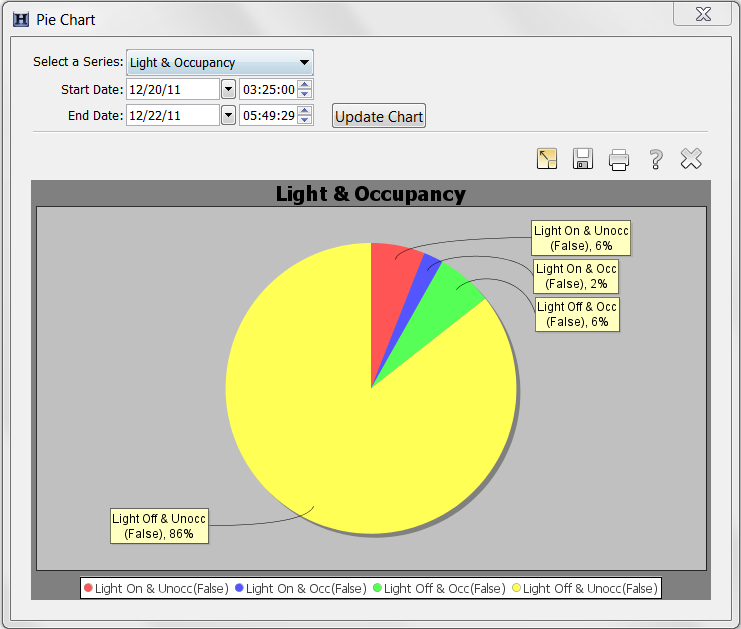 如果您使用具有兩個系列(例如“燈光”和“占用”)的繪圖,并裁剪其中一個系列,則餅圖數據的時間范圍將限制為兩個系列中較短的一個。