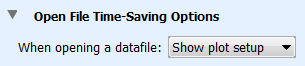 此首選項控制打開文件時是否自動顯示“繪圖設置”窗口。 如果您希望每次打開文件時都顯示繪圖設置窗口,請選擇“顯示繪圖設置”。 如果要繞過“繪圖設置”窗口,請選擇“自動繪圖”,并在每次打開文件時自動生成繪圖。 如果您將使用通過“繪圖設置”窗口訪問的數據助理,則不建議這樣做。