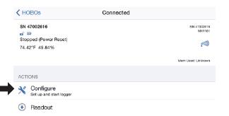 打開HOBOmobile。在您的設備中啟用Bluetooth®設置,如果提示。