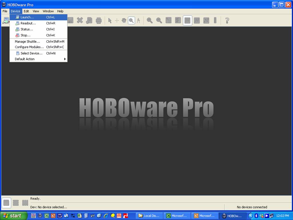 Data Logger啟動完成, Shuttle 將顯示 “ Hobo Launched”