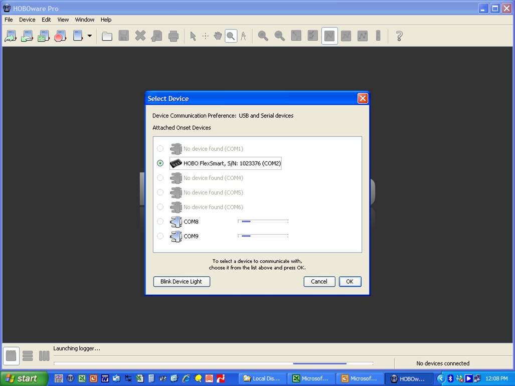 根據連接到 USB Serial Cable的不同端口, 會顯示 data logger 已經連接