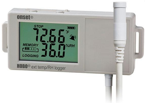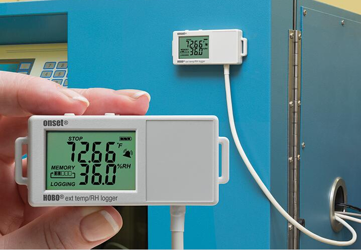 HOBO UX100-023溫濕度記錄儀外接1個(gè)溫濕度探頭,配有液晶屏能夠?qū)崟r(shí)顯示測(cè)試當(dāng)前的環(huán)境溫度、相對(duì)濕度、電量、內(nèi)存使用量和報(bào)警開(kāi)關(guān)狀態(tài)等信息,方便您直觀了解記錄儀的工作狀態(tài)。該儀器最適合測(cè)量室內(nèi)溫濕度,既可以用于住宅、辦公室的室內(nèi)溫濕度測(cè)量,也可以用于儲(chǔ)藏室、倉(cāng)庫(kù)、服務(wù)器機(jī)房等建筑物室內(nèi)的環(huán)境溫室度跟蹤,還可用于博物館的環(huán)境濕度測(cè)量。其外接式溫濕度探頭配有1.83m線纜,可以將探頭插入狹窄區(qū)域或箱體內(nèi)部來(lái)測(cè)量器內(nèi)部的溫濕度情況。
